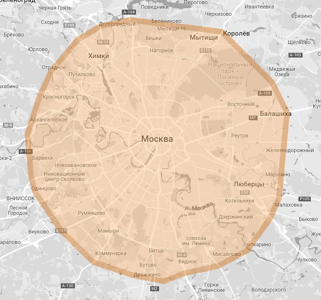 Мастер приедет в любой район столицы. Приедет тот, кто находится ближе всего к вашему местоположению. Что касается Московской области — мы можем выехать на расстояние до 15 км от МКАД.
